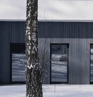 240 Заказчик выбрал угольные оттенки на Термодревесине, которые подчеркивают всю брутальность дома.